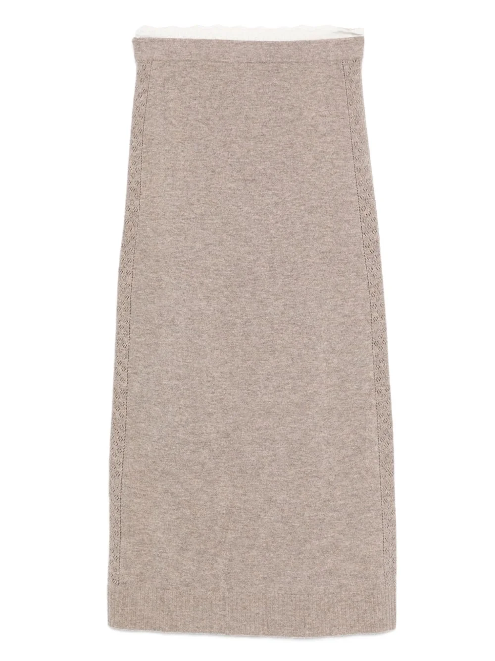 knitted midi skirt Highlights - Taupe - Cashmere wool blend - Knitted side panels - Straight hem - Close-fitting - Midi length Imported Composition Viscose 62%, RWS Wool 50%, Wool 40%, Polyester 22%, Polyamide 14%, Cashmere 10%, Elastane 2% SIZE & FIT Model measurements Height 5 ft 10 in(1.79 m) Bust/Chest 31.88 in(81 cm) Hips 35.43 in(90 cm) Waist 23.62 in(60 cm) Washing instructions Hand Wash