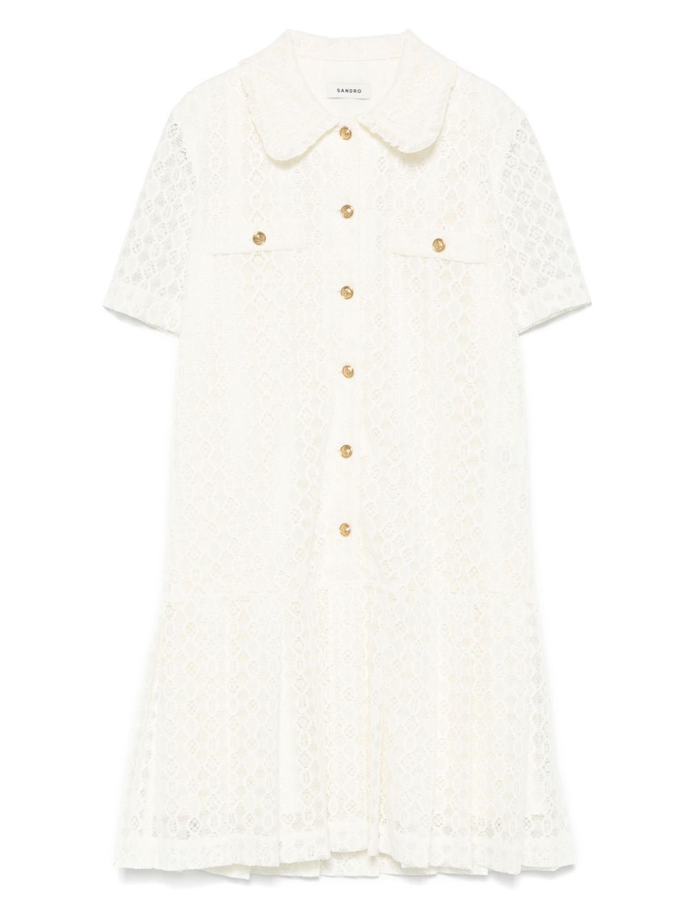 lace mini dress Highlights - White - Front button fastening - Flared skirt - Ruffle collar - Faux pocket detail Imported Composition Lining: Polyester 100% Outer: Polyester 100% Washing instructions Dry Clean Only