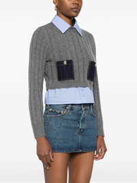 layered-effect sweater Highlights - Slate grey - Two front patch pockets - Ribbed cuffs - Classic collar - Long sleeves Imported Composition Cotton 100%, Wool 92%, Cashmere 8% SIZE & FIT Model measurements Height 5 ft 11 in(1.8 m) Bust/Chest 31.49 in(80 cm) Hips 36.61 in(93 cm) Waist 24.4 in(62 cm) FittingInformation Designed for a relaxed fit, this piece allows for comfort and movement when worn Cropped in length Made with a midweight knit, this piece offers some stretch Washing instructions Hand Wash