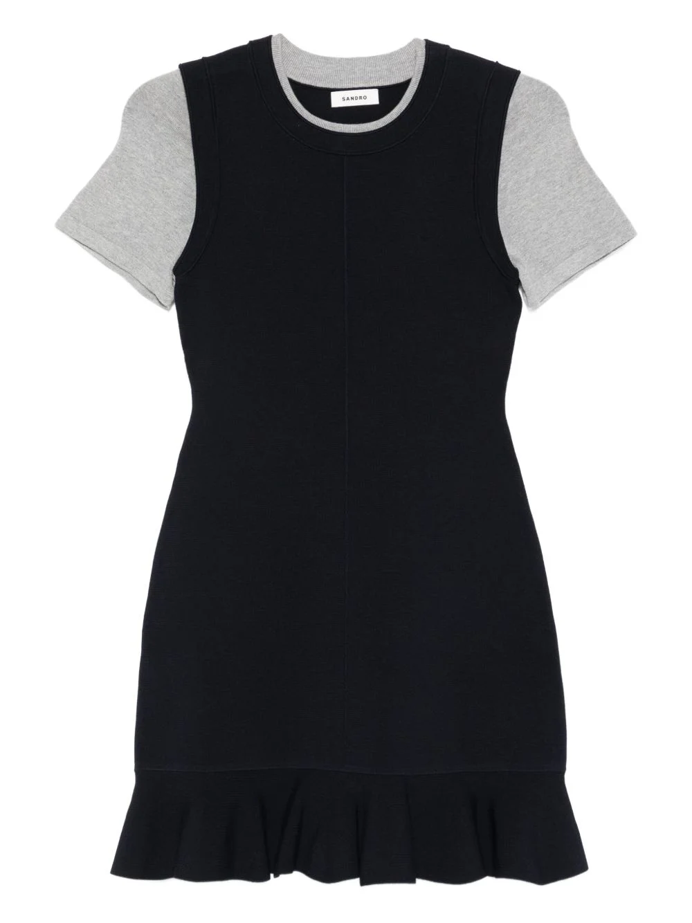 layered ruffled mini day dress Highlights - Navy blue - Round neck - Short sleeves - Layered bodice - Ruffled hem Imported Composition Nylon 88%, Organic Cotton 70%, Recycled Viscose 63%, Recycled Nylon 37%, Viscose 30%, Spandex/Elastane 12% SIZE & FIT Model measurements Height 5 ft 9 in(1.75 m) Bust/Chest 34.64 in(88 cm) Hips 36.61 in(93 cm) Waist 26.37 in(67 cm) Washing instructions Dry Clean Only