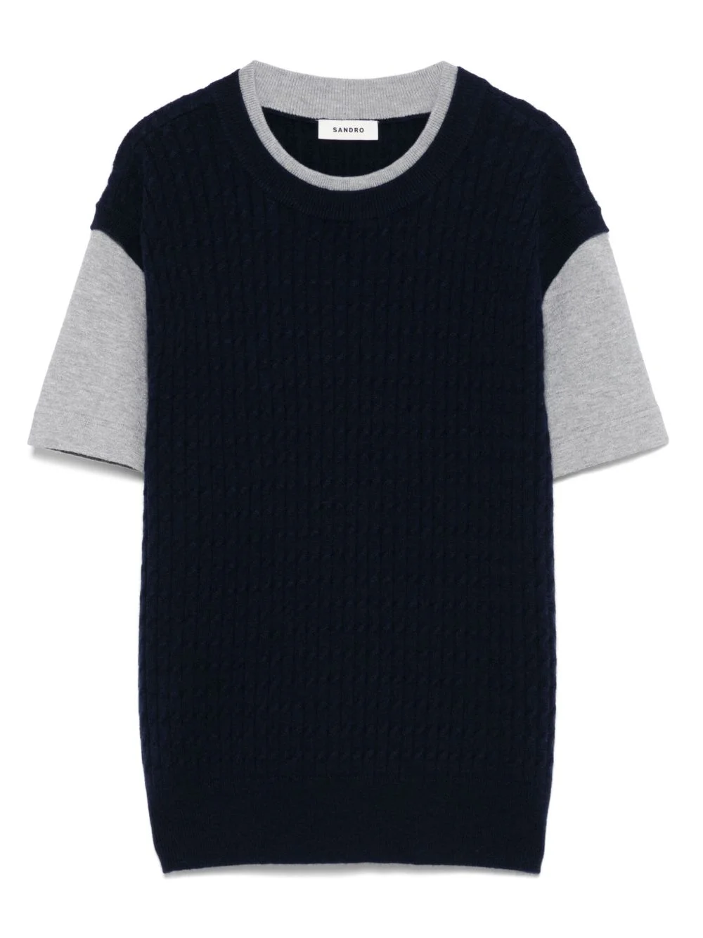 layered T-shirt Highlights - Navy blue - Ribbed hem - Crew neck - Short sleeves Imported Composition Wool 89%, Cotton 61%, Viscose 22%, Polyamide 17%, Cashmere 11% SIZE & FIT Model measurements Height 5 ft 10 in(1.79 m) Bust/Chest 35.43 in(90 cm) Hips 35.03 in(89 cm) Waist 25.19 in(64 cm) FittingInformation Designed for a relaxed fit, this piece allows for comfort and movement when worn Made from a midweight non-stretch fabric, this piece offers minimal elasticity when worn Washing instructions Hand Wash