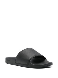 logo-print slides Highlights - Black - Embossed logo to the side - Flat sole Imported Composition Sole: Rubber 100% Outer: Polyurethane 100% Lining: Polyurethane 100%
