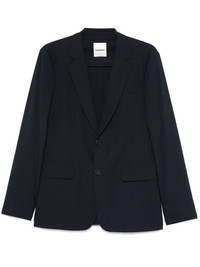 wool suit jacket Highlights - Navy blue - Front button fastening - Chest welt pocket - Two side patch pockets Imported Composition Outer: Wool 66%, Polyamide 30%, Elastane 4% Lining: Polyester 55%, Viscose 45% SIZE & FIT Model measurements Height 6 ft 2 in(1.87 m) Bust/Chest 38.18 in(97 cm) Hips 36.61 in(93 cm) Waist 29.13 in(74 cm) FittingInformation Designed for a slim fit, offering a comfortable fit that sits just away from the body Made from a midweight fabric Washing instructions Dry Clean Only