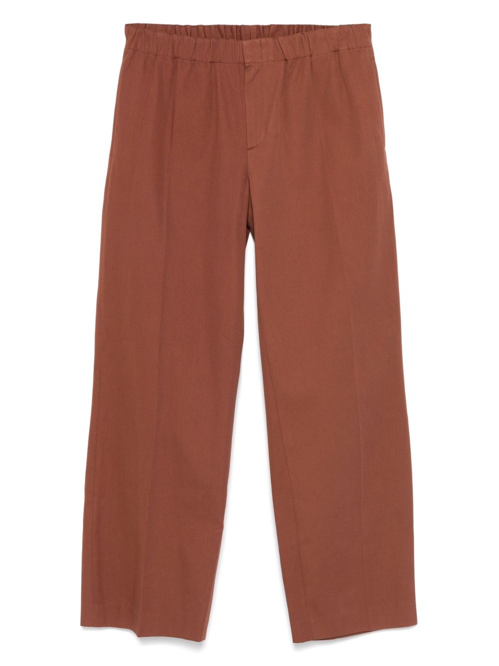organic cotton straight-leg trousers Highlights - Brown - Organic cotton - Elasticated waistband Imported Composition Lining: Organic Cotton 100% Outer: Organic Cotton 100% SIZE & FIT Model measurements Height 6 ft 0 in(1.84 m) Bust/Chest 35.82 in(91 cm) Hips 37 in(94 cm) Waist 28.34 in(72 cm) FittingInformation Designed for a straight-leg, allowing for an unrestricted and comfortable fit over the leg The elasticated waist allows for a comfortable fit Made from a midweight non-stretch fabric Washing instructions Dry Clean Only