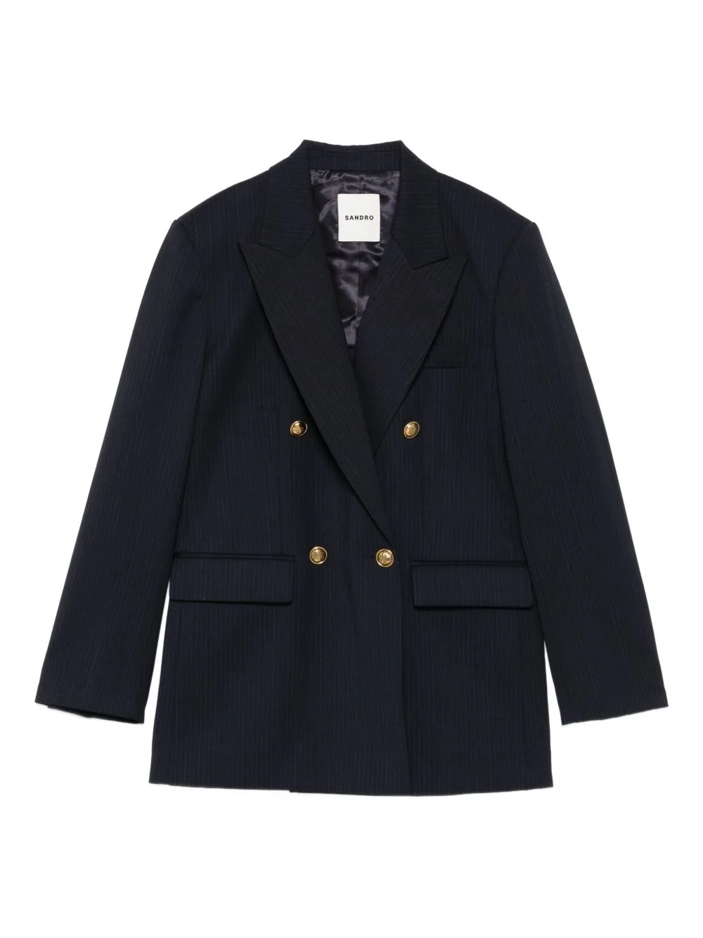 pinstripe double-breasted blazer Highlights - Navy blue - Pinstripe pattern - Double-breasted fastening - Gold-tone buttons - Notched lapels - Long sleeves Imported Composition Outer: Wool 55%, Polyester 41%, Elastane 4% Lining: Cotton 100% SIZE & FIT Model measurements Height 5 ft 10 in(1.78 m) Bust/Chest 31.49 in(80 cm) Hips 37 in(94 cm) Waist 23.62 in(60 cm) Washing instructions Dry Clean Only