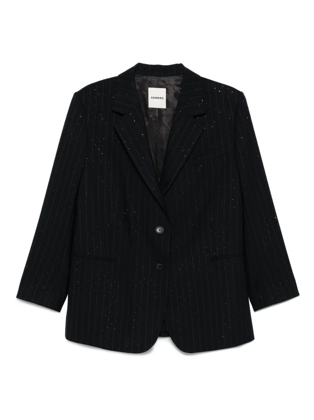 pinstripe metallic blazer Highlights - Navy blue - Pinstripe pattern - Metallic detailing - Button fastening - Long sleeves - Notched lapels Imported Composition RWS Wool 100% SIZE & FIT Model measurements Height 5 ft 10 in(1.77 m) Bust/Chest 33.07 in(84 cm) Hips 37 in(94 cm) Waist 24.8 in(63 cm) FittingInformation Designed to be unstructured, offering a loose fit throughout The internal shoulder pads offer a structured shape Made from a midweight non-stretch fabric Washing instructions Dry Clean Only
