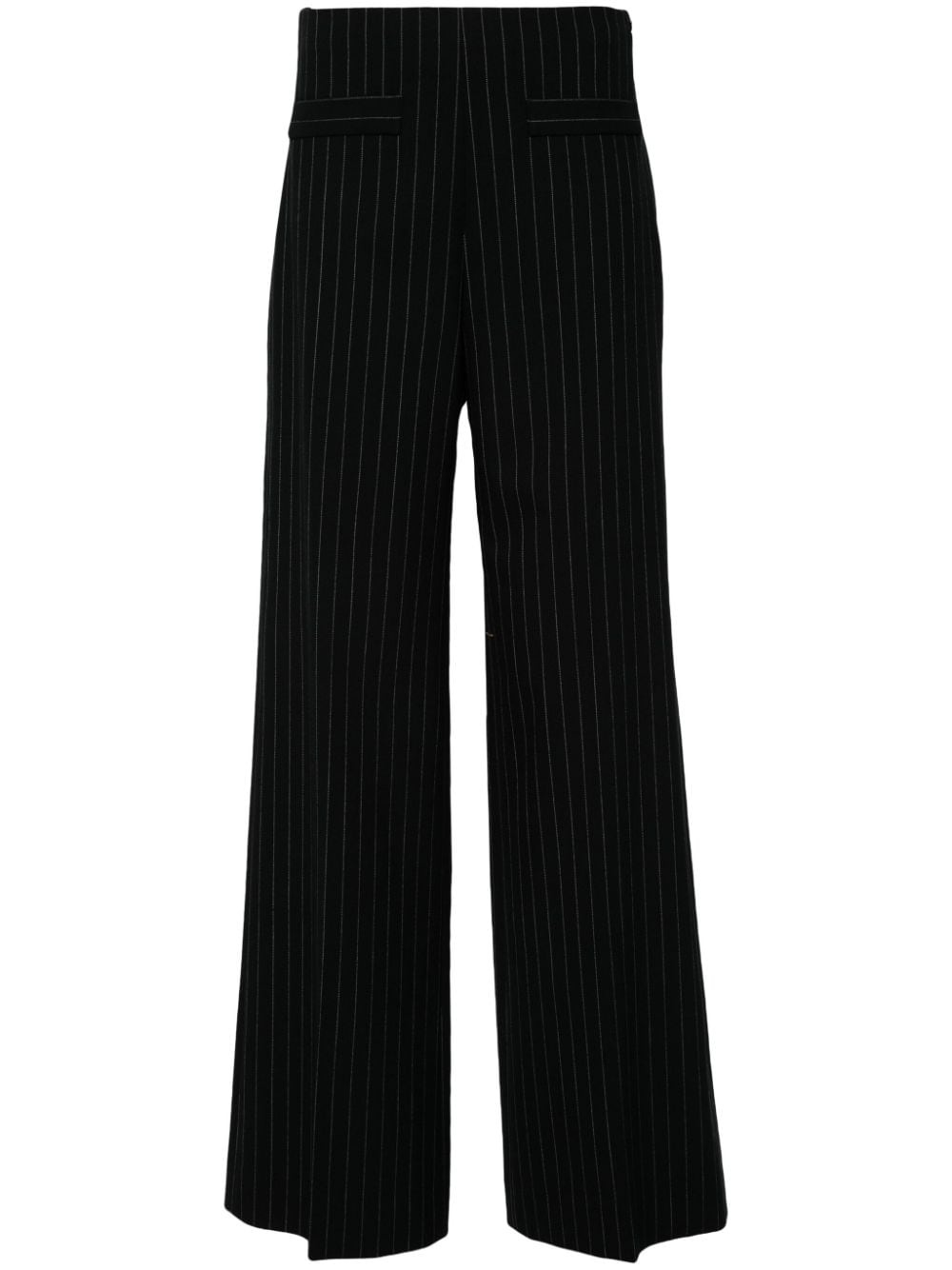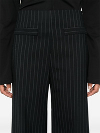 pinstripe trousers Highlights - Black/white - Gabardine weave - Pinstripe pattern - Concealed side zip fastening - Wide leg - Two faux front welt pockets - Straight hem Imported Composition Outer: Recycled Polyester 54%, Wool 44%, Elastane 2% Lining: Cotton 90%, Polyester 10% SIZE & FIT Model measurements Height 5 ft 10 in(1.78 m) Bust/Chest 33.07 in(84 cm) Hips 36.61 in(93 cm) Waist 24.8 in(63 cm) FittingInformation Designed with a wide-leg cut, these trousers allow for a close fit at the waist and offer a loose and roomy fit over the leg Made from a midweight stretch fabric, this piece offers elasticity and flexibility when worn This piece fits true to size – take your usual size Washing instructions Dry Clean Only