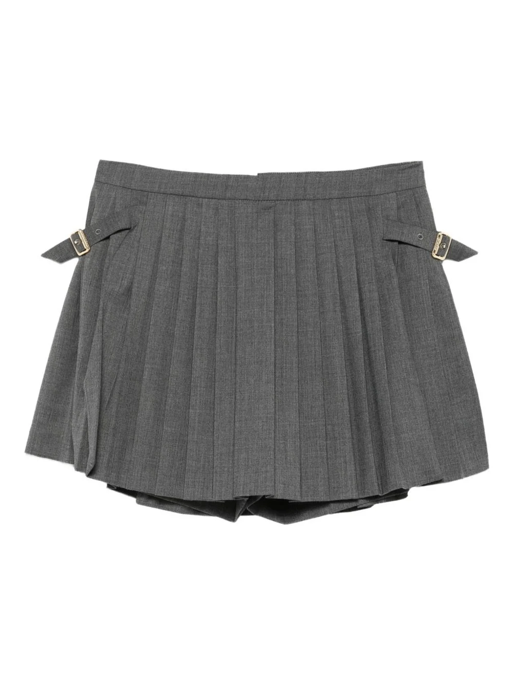 pleated buckle skorts Highlights - Grey - Pleated design - Side buckle fastening Imported Composition Polyester 54%, Virgin Wool 44%, Elastane 2% SIZE & FIT Model measurements Height 5 ft 11 in(1.8 m) Bust/Chest 31.49 in(80 cm) Hips 36.61 in(93 cm) Waist 24.4 in(62 cm) Washing instructions Dry Clean Only