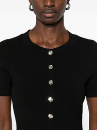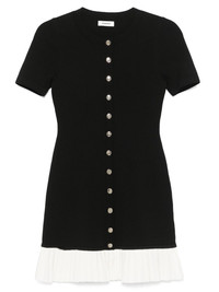 pleated mini dress Highlights - Black - Knitted construction - Crew neck - Short sleeves - Decorative button detailing - Unlined - Contrasting pleated hem - Thigh-length Imported Composition Viscose 53%, Polyamide 45%, Elastane 2% SIZE & FIT Model measurements Height 5 ft 10 in(1.77 m) Bust/Chest 32.28 in(82 cm) Hips 35.03 in(89 cm) Waist 25.19 in(64 cm) FittingInformation Designed for a close fit throughout Made from a midweight stretch fabric, this piece offers elasticity and flexibility when worn Washing instructions Hand Wash
