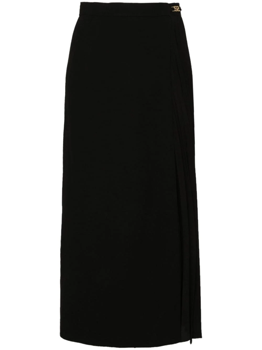 pleated wrap midi skirt Highlights - Black - Twill weave - Gold-tone logo plaque - Fully pleated - Wrap design - A-line - Side slit pockets Imported Composition Outer: Recycled Polyester 100%, Viscose 98%, Spandex/Elastane 2% Lining: Cotton 100% Washing instructions Dry Clean Only