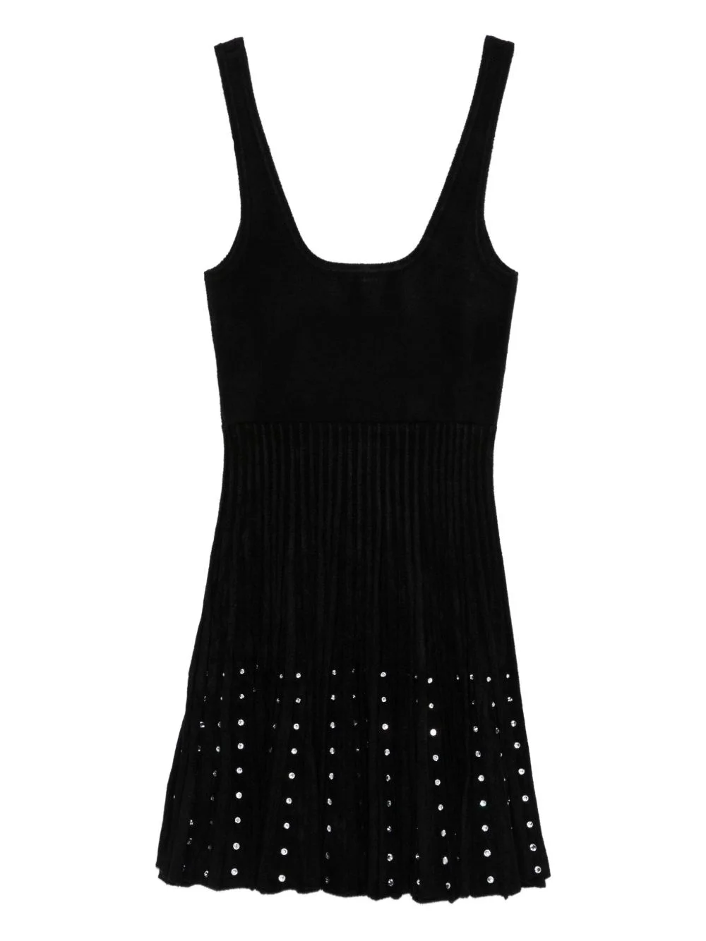 rhinestone-embellished velvet dress Highlights - Black - Velvet - Rhinestone embellishment - Sleeveless - Square neck Imported Composition Viscose 51%, Nylon 49% SIZE & FIT Model measurements Height 5 ft 11 in(1.8 m) Bust/Chest 32.67 in(83 cm) Hips 36.22 in(92 cm) Waist 24.4 in(62 cm) Washing instructions Dry Clean Only