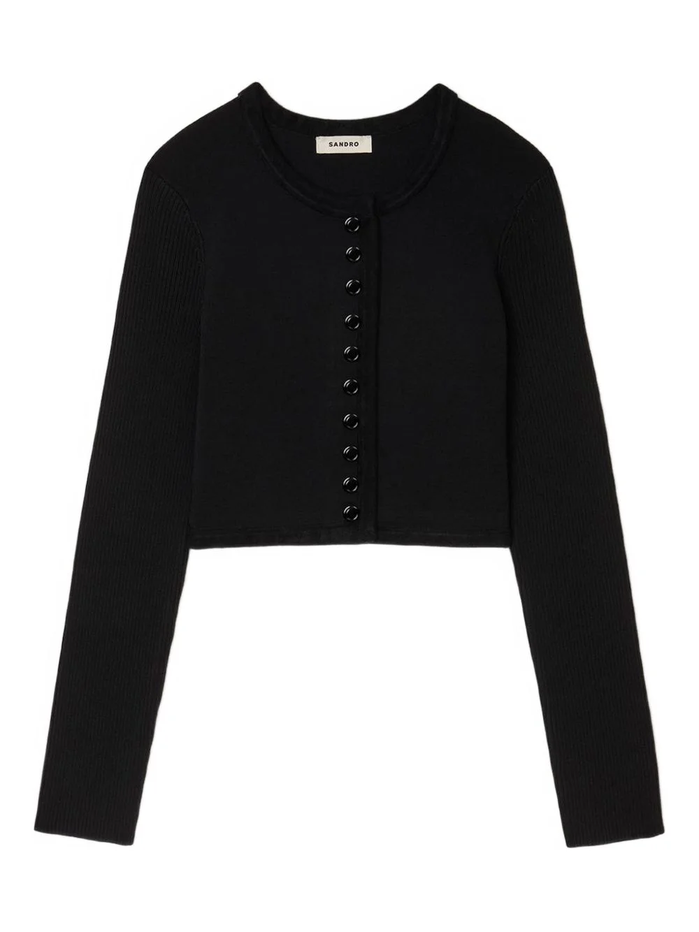 ribbed button cardigan Highlights - Black - Ribbed knit - Long sleeves - Crew neck - Button front fastening - Cropped length Imported Composition Fabric 100% Washing instructions Read Manufacturer Guidelines