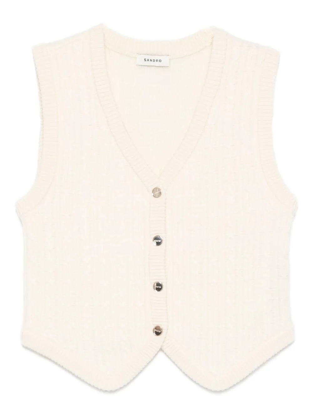 ribbed buttoned cardigan Highlights - Off-white - Ribbed texture - V-neck - Sleeveless - Button fastening Imported Composition Wool 96%, Polyamide 4% Washing instructions Hand Wash
