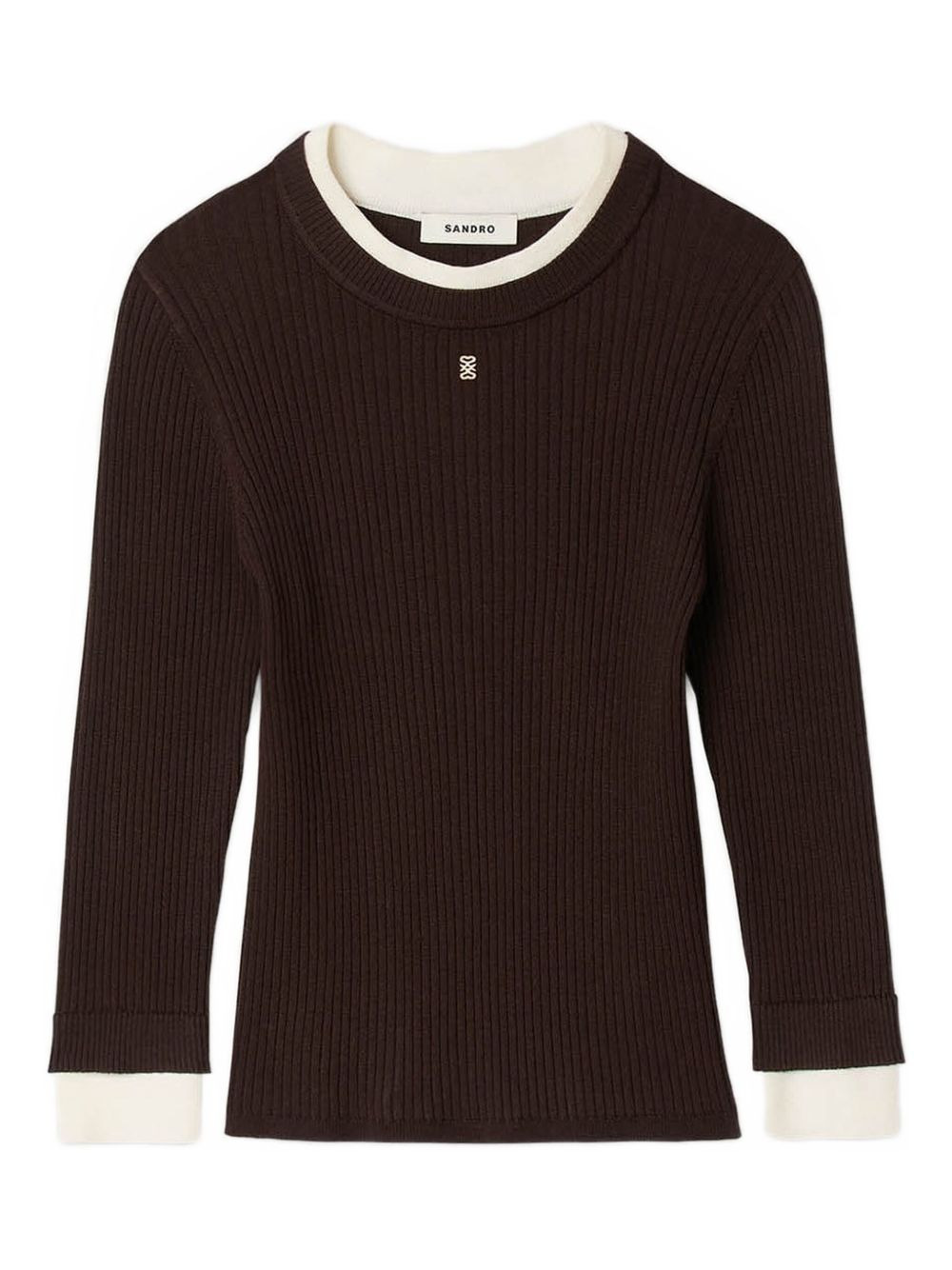 ribbed round-neck top Highlights - Dark brown - Round neck - Cropped sleeves - Contrasting trim Imported Composition Fabric 100% Washing instructions Read Manufacturer Guidelines