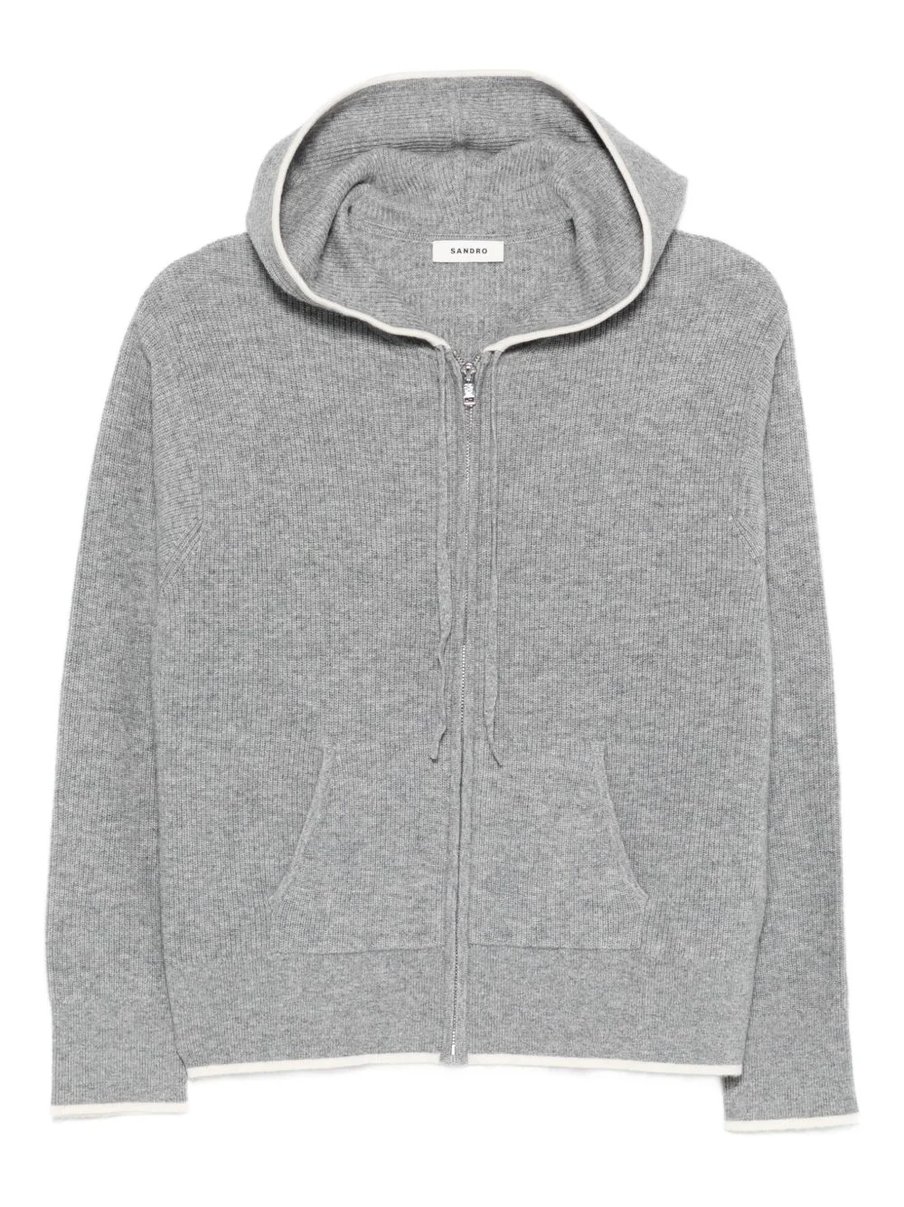 ribbed zip-up hooded cardigan