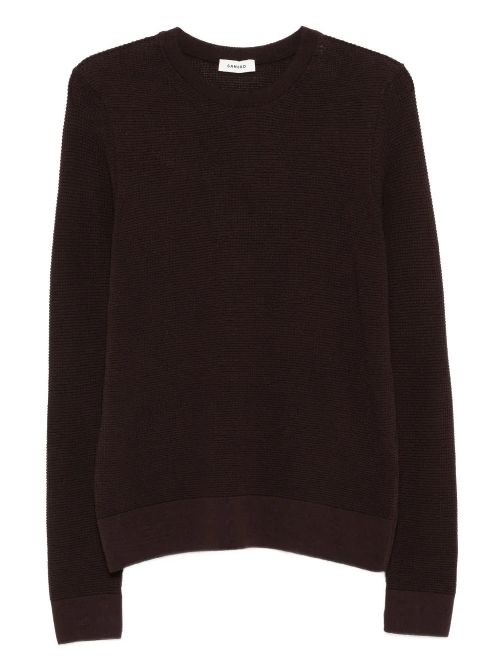 rice-stitch round-neck sweater Highlights - Brown - Rice stitch texture - Round neck - Long sleeves - Plain cuffs - Plain hem Imported Composition Cotton 100% SIZE & FIT Model measurements Height 6 ft 0 in(1.84 m) Bust/Chest 37.79 in(96 cm) Hips 37 in(94 cm) Waist 31.49 in(80 cm) FittingInformation Designed for a slim fit, offering a comfortable fit that sits just away from the body Made with a midweight knit, this piece offers some stretch Washing instructions Hand Wash