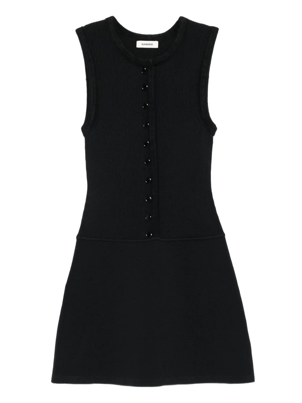 round-neck button-front mini dress Highlights - Black - Ribbed fabric - Round neck - Sleeveless - Button front Imported Composition Polyamide 56%, Viscose 42%, Elastane 2% SIZE & FIT Model measurements Height 5 ft 9 in(1.75 m) Bust/Chest 34.64 in(88 cm) Hips 36.61 in(93 cm) Waist 26.37 in(67 cm) Washing instructions Hand Wash