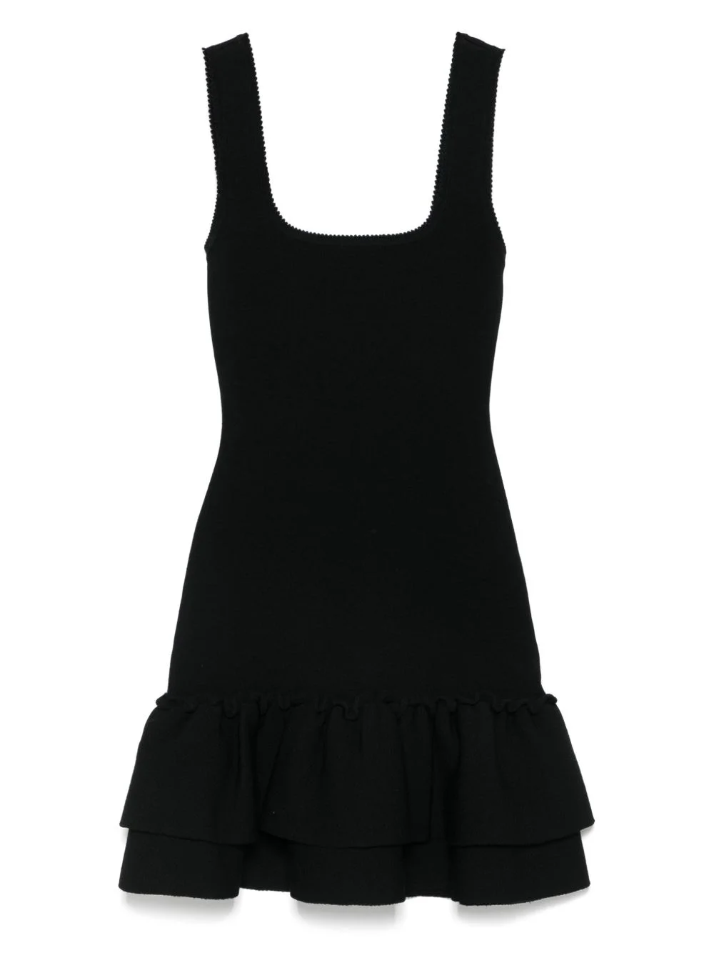 ruffle-detail mini dress Highlights - Black - Square neck - Square open back - Sleeveless - Ruffle hem Imported Composition Nylon 88%, Viscose 45%, Recycled Nylon 35%, Recycled Viscose 20%, Lycra 12% SIZE & FIT Model measurements Height 5 ft 10 in(1.79 m) Bust/Chest 35.43 in(90 cm) Hips 35.03 in(89 cm) Waist 25.19 in(64 cm) FittingInformation Designed for a close fit throughout Made with a midweight knit, this piece offers some stretch Washing instructions Hand Wash