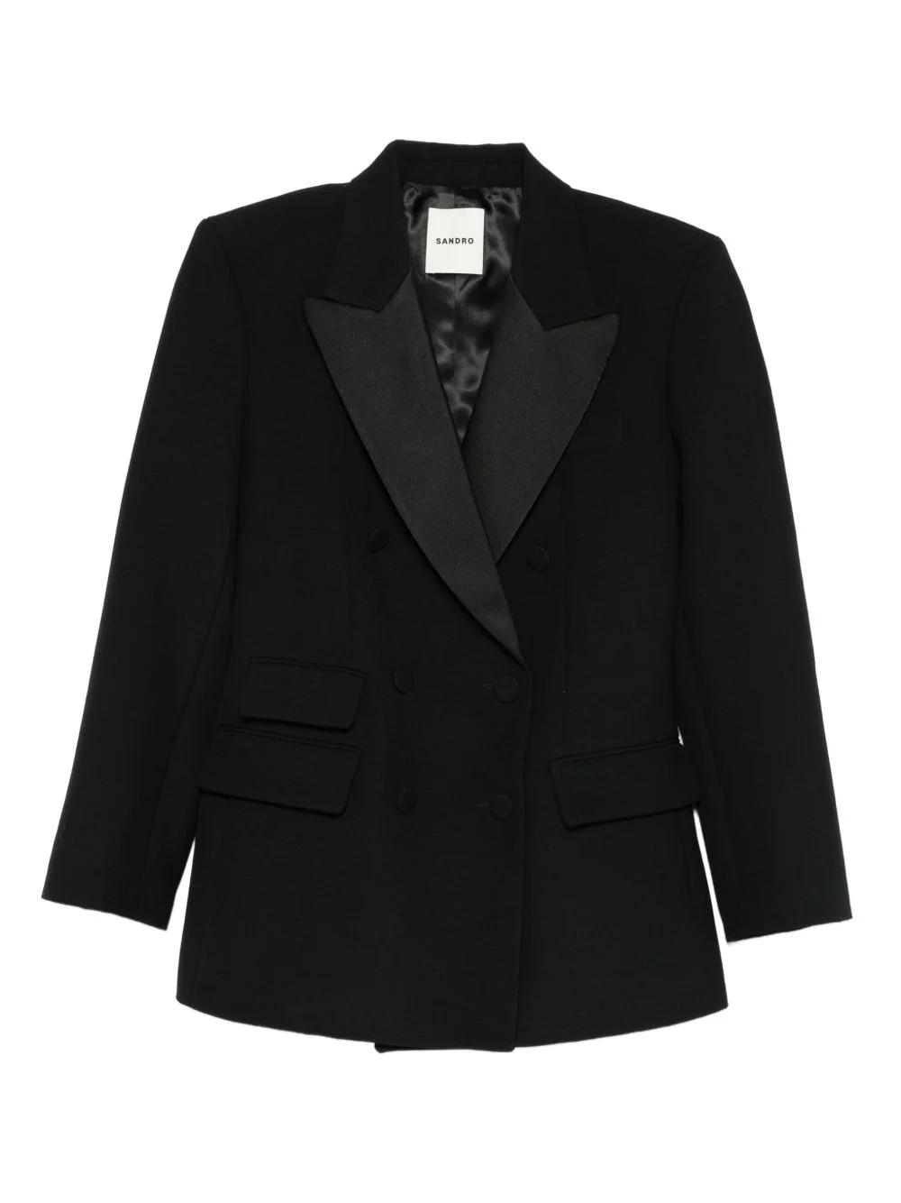 satin-lapel double-breasted blazer Highlights - Black - Peak lapels - Double-breasted button fastening - Two front flap pockets - Long sleeves Imported Composition Fabric 100% SIZE & FIT Model measurements Height 5 ft 8 in(1.73 m) Bust/Chest 29.92 in(76 cm) Hips 33.07 in(84 cm) Waist 23.22 in(59 cm) Washing instructions Read Manufacturer Guidelines