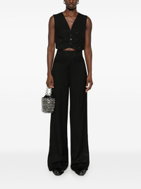 sequined palazzo pants Highlights - Black - Interlock twill weave - Palazzo design - Sequin embellishment - Concealed side zip fastening - High-waisted - Vertical stripe embroidery - Faux pocket detail - Dart detailing to the rear Imported Composition Outer: Viscose 98%, Elastane 2% Lining: Cotton 100% SIZE & FIT Model measurements Height 5 ft 10 in(1.77 m) Bust/Chest 32.28 in(82 cm) Hips 35.03 in(89 cm) Waist 25.19 in(64 cm) FittingInformation Designed with a wide-leg cut, these trousers allow for a close fit at the waist and offer a loose and roomy fit over the leg Made from a midweight non-stretch fabric Washing instructions Dry Clean Only