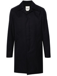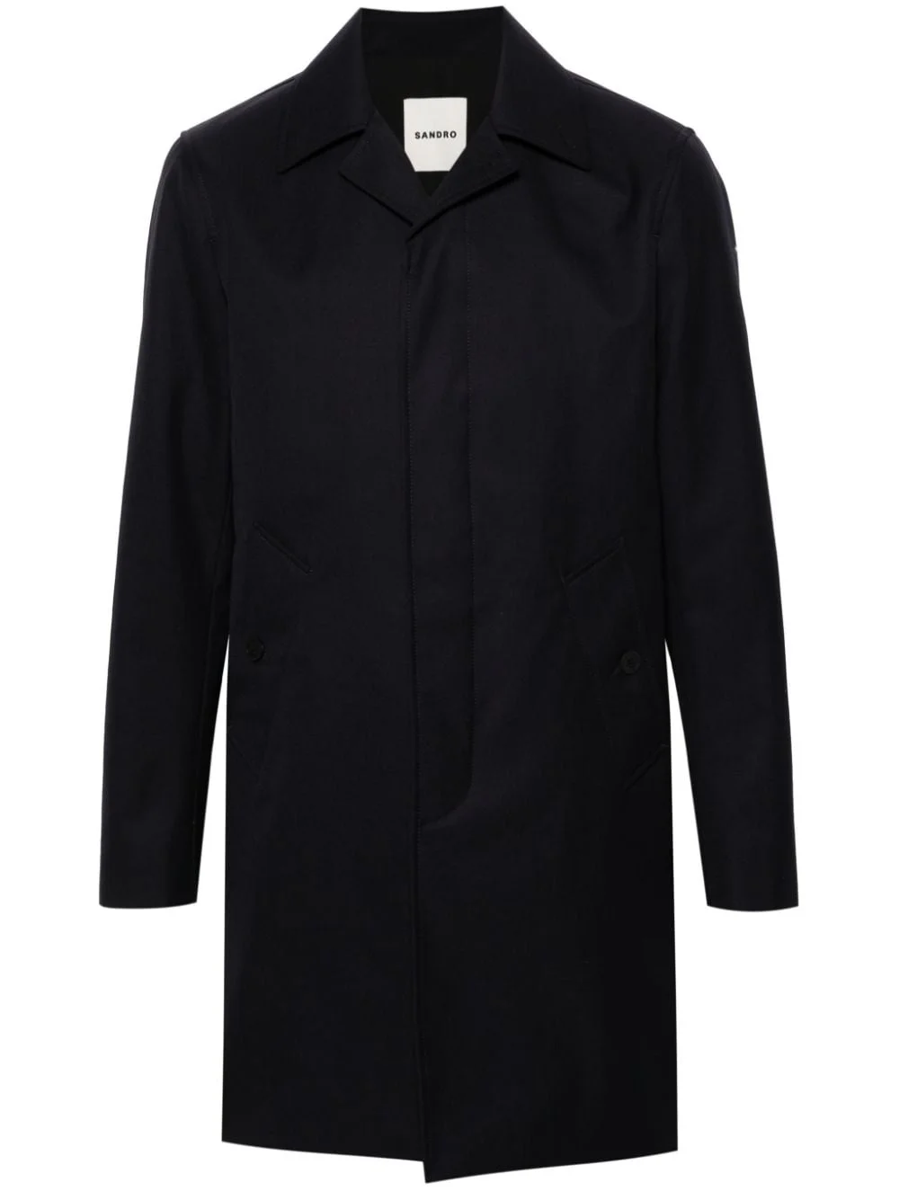 single-breasted midi coat Highlights - Navy blue - Twill weave - Spread collar - Concealed front button fastening - Long sleeves - Two side button-fastening pockets - Full lining - Two internal button-fastening pockets - Rear slit - Straight hem - Mid-length Imported Composition Outer: Polyester 57%, Wool 43% Lining: Polyester 100%, Cotton 100%, Viscose 100% SIZE & FIT Model measurements Height 6 ft 2 in(1.87 m) Bust/Chest 36.22 in(92 cm) Hips 37 in(94 cm) Waist 27.95 in(71 cm) FittingInformation Designed for a slim fit, offering a comfortable fit that sits just away from the body The vented hem offers movement at the rear Made from a midweight non-stretch fabric This piece fits true to size – take your usual size Washing instructions Dry Clean Only