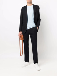 single-breasted wool suit jacket marine navy wool narrow notch lapels chest welt pocket front button fastening two front flap pockets long sleeves central rear vent straight hem Made in Italy Composition Lining: Polyester 55%, Viscose 45% Outer: RWS Wool 99%, Spandex/Elastane 1% SIZE & FIT Model measurements Height 6 ft 1 in(1.85 m) Bust/Chest 35.82 in(91 cm) Hips 37.79 in(96 cm) Waist 29.13 in(74 cm) Washing instructions Dry Clean Only