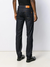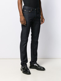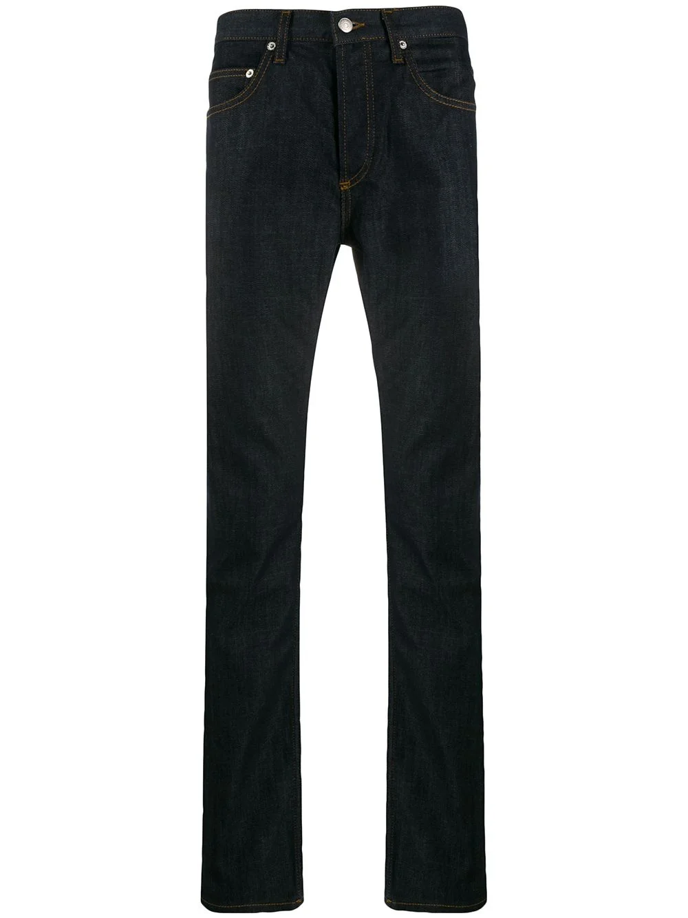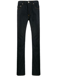 slim-cut raw jeans Highlights - Indigo blue - Cotton-blend - Slim cut - Logo patch to the rear - Contrast stitching - Belt loops - Button fly fastening - Classic five pockets Made in United Kingdom Composition Lining: Polyester 65%, Cotton 35% Outer: Organic Cotton 99%, Spandex/Elastane 1% SIZE & FIT Model measurements Height 6 ft 2 in(1.89 m) Bust/Chest 36.22 in(92 cm) Hips 35.82 in(91 cm) Waist 28.74 in(73 cm) FittingInformation Designed for a slim fit, these jeans offer a comfortable fit that sits just away from the leg Washing instructions Machine Wash