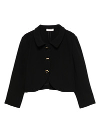 square-buttons cropped jacket Highlights - Black - Curved hem - Gold-tone square buttons - Long sleeves Imported Composition Fabric 100% SIZE & FIT Model measurements Height 5 ft 9 in(1.74 m) Bust/Chest 34.64 in(88 cm) Hips 36.61 in(93 cm) Waist 26.37 in(67 cm) Washing instructions Read Manufacturer Guidelines