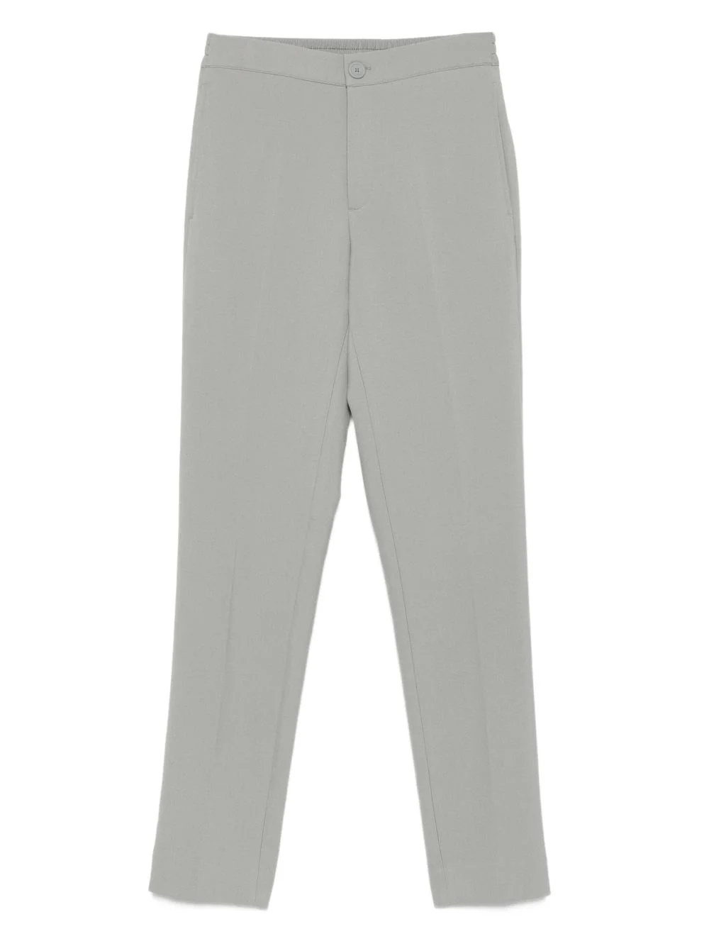 straight-leg trousers Highlights - Grey - Button fly - Side pockets Imported Composition Outer: Polyester 68%, Viscose 28%, Elastane 4% Lining: Cotton 100% SIZE & FIT Model measurements Height 6 ft 2 in(1.87 m) Bust/Chest 37.79 in(96 cm) Hips 37.79 in(96 cm) Waist 30.31 in(77 cm) FittingInformation Designed for a slim fit, offering a comfortable fit that sits just away from the leg The partially elasticated waistband offers increased movement and comfort at the waist Made from a midweight non-stretch fabric Washing instructions Dry Clean Only