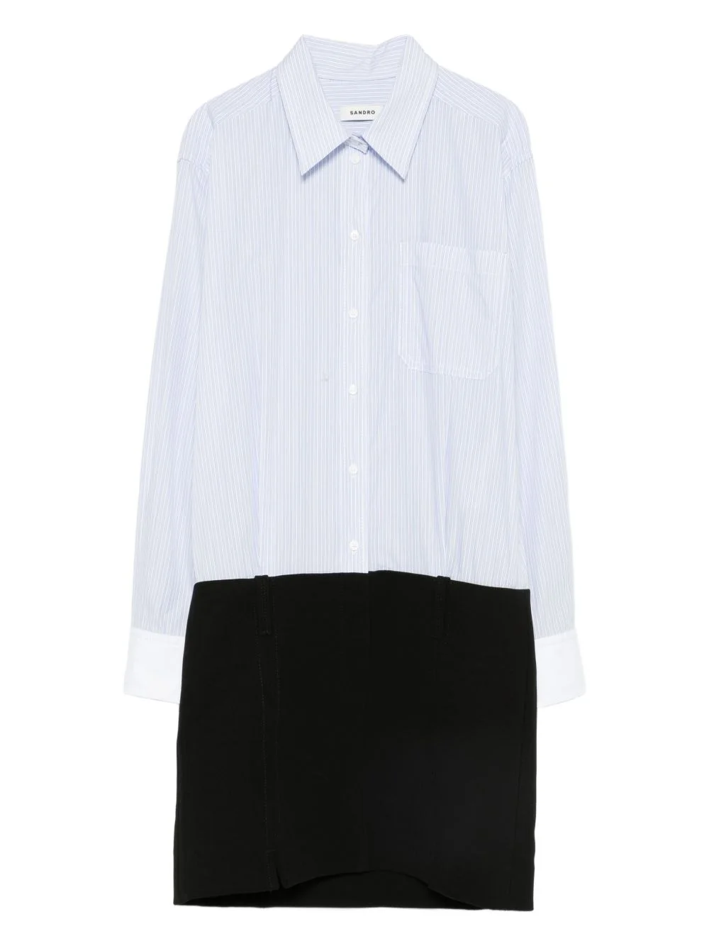 striped mini dress Highlights - Black/white - Striped detailing - Front button fastening - Chest patch pocket - Belt loops - Straight skirt Imported Composition Cotton 100%, Polyester 100% Lining: Cotton 100% Washing instructions Read Manufacturer Guidelines