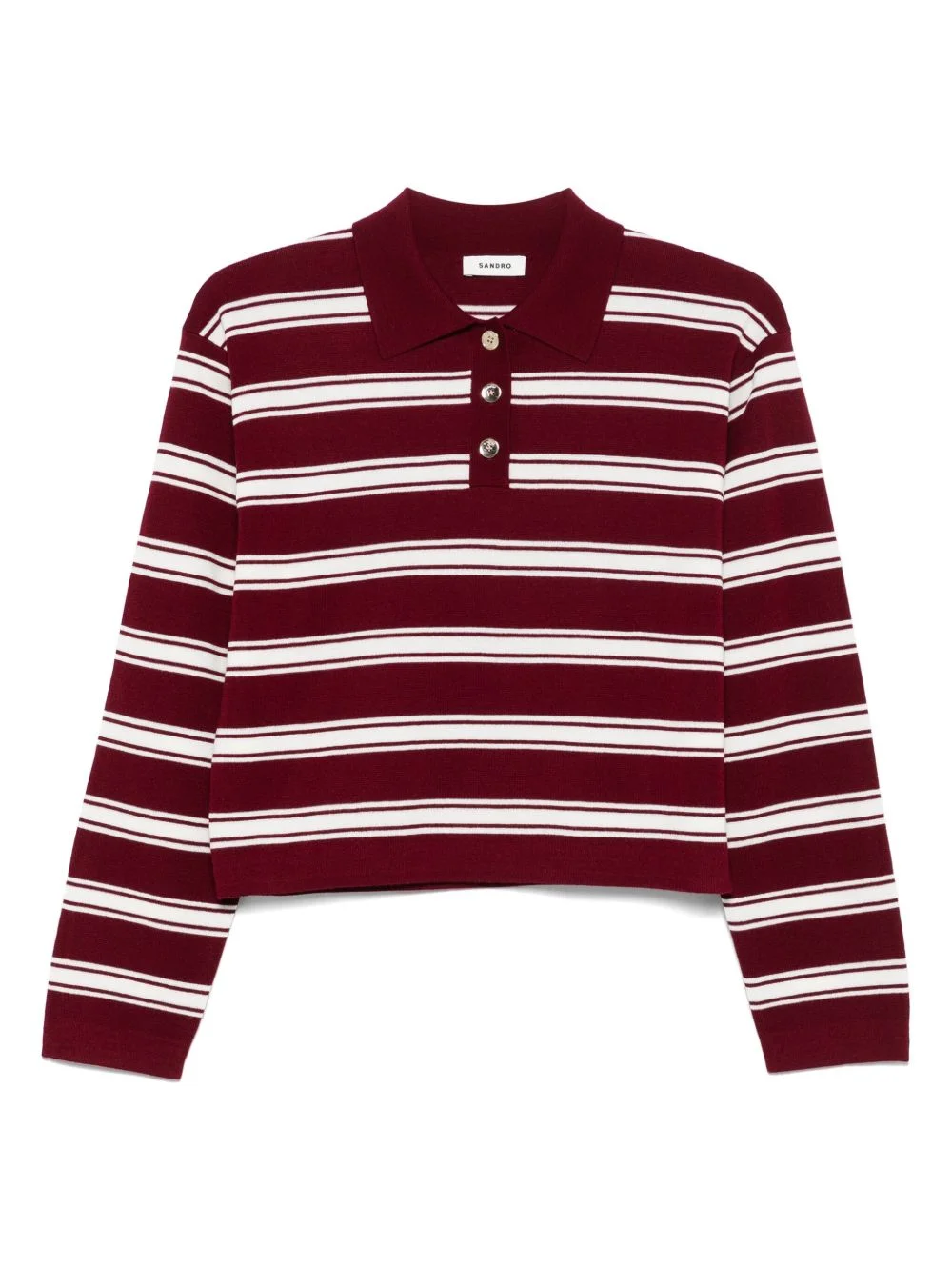 striped polo top Highlights - Bordeaux red - Short front button fastening - Polo collar - Long sleeves - Ribbed trim Imported Composition Fabric 100% SIZE & FIT Model measurements Height 5 ft 11 in(1.8 m) Bust/Chest 31.49 in(80 cm) Hips 35.82 in(91 cm) Waist 24.8 in(63 cm) FittingInformation Designed for a relaxed fit, this piece allows for comfort and movement when worn Made with a midweight knit, this piece offers some stretch Washing instructions Hand Wash