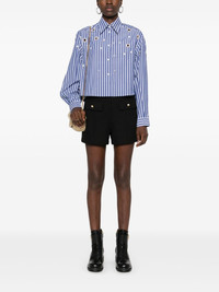 striped shirt Highlights - Blue/white - Cotton - Poplin texture - Vertical stripe pattern - Front button fastening - Straight-point collar - Drop shoulder - Long sleeves - Buttoned cuffs - Cut-out detailing - Faux-pearl detailing - Crystal embellishment - High-low hem Imported Composition BCI Cotton 100% SIZE & FIT Model measurements Height 5 ft 11 in(1.8 m) Bust/Chest 32.67 in(83 cm) Hips 36.22 in(92 cm) Waist 24.4 in(62 cm) FittingInformation Designed to be unstructured, offering a loose fit throughout Washing instructions Dry Clean Only