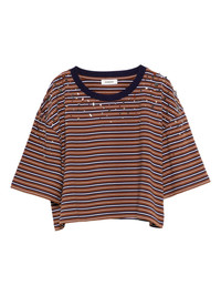 striped T-shirt Highlights - Brown - Organic cotton - Striped detail - Crew neck - Short sleeves - Straight hem - Cropped Imported Composition Organic Cotton 100% SIZE & FIT Model measurements Height 5 ft 10 in(1.79 m) Bust/Chest 31.88 in(81 cm) Hips 35.43 in(90 cm) Waist 23.62 in(60 cm) Washing instructions Read Manufacturer Guidelines