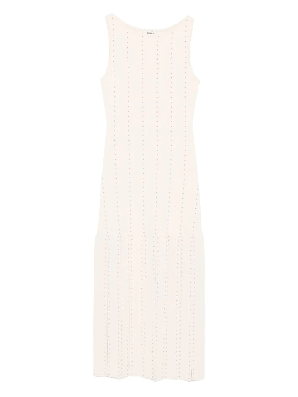 studded knit midi dress Highlights - Light beige - Sleeveless - Boat neck Imported Composition Viscose 52%, Polyamide 46%, Elastane 2% SIZE & FIT Model measurements Height 5 ft 10 in(1.78 m) Bust/Chest 33.46 in(85 cm) Hips 36.22 in(92 cm) Waist 23.22 in(59 cm) Washing instructions Hand Wash