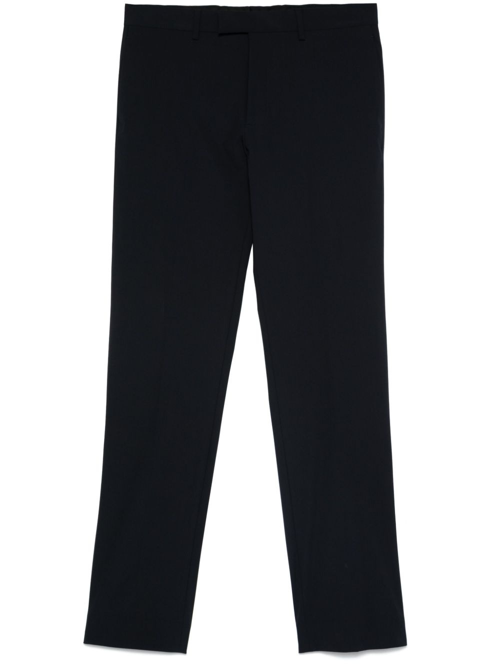tapered trousers Highlights - Navy blue - Concealed front button, hook and zip fastening - Two side inset pockets - Two rear button-fastening jetted pockets Imported Composition Outer: Wool 66%, Polyamide 30%, Elastane 4% Lining: Polyester 65%, Cotton 35% SIZE & FIT Model measurements Height 6 ft 2 in(1.87 m) Bust/Chest 38.18 in(97 cm) Hips 36.61 in(93 cm) Waist 29.13 in(74 cm) FittingInformation Designed for a slim fit, offering a comfortable fit that sits just away from the leg Made from a lightweight stretch fabric, this piece offers elasticity and flexibility when worn Washing instructions Dry Clean Only
