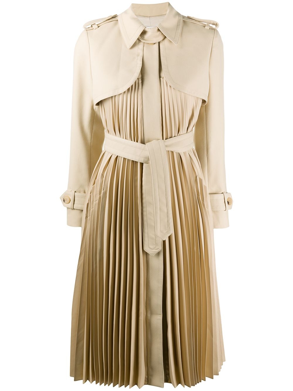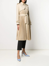 pleated trench coat Highlights - Beige vino pleated trench coat from sandro paris featuring a pleated design, epaulettes on the shoulders, long sleeves, a wind flap, a tie waist and a front fastening. Imported Composition Lining: Viscose 100% Outer: Recycled Polyester 100% SIZE & FIT Model measurements Height 5 ft 10 in(1.78 m) Bust/Chest 33.07 in(84 cm) Hips 35.82 in(91 cm) Waist 25.98 in(66 cm) Washing instructions Dry Clean Only