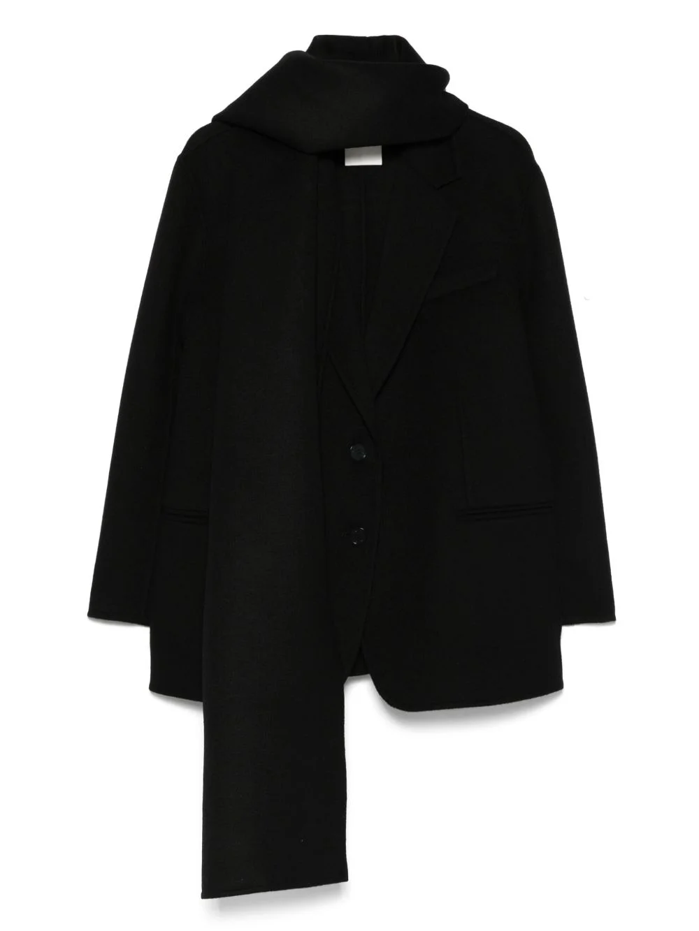 wool coat Highlights - Black - Front button fastening - Chest welt pocket - Two front jetted pockets - Attached scarf Imported Composition Wool 100% SIZE & FIT Model measurements Height 5 ft 9 in(1.75 m) Bust/Chest 34.64 in(88 cm) Hips 36.61 in(93 cm) Waist 26.37 in(67 cm) FittingInformation Designed to be unstructured, offering a loose fit throughout Made from a midweight non-stretch fabric Washing instructions Dry Clean Only