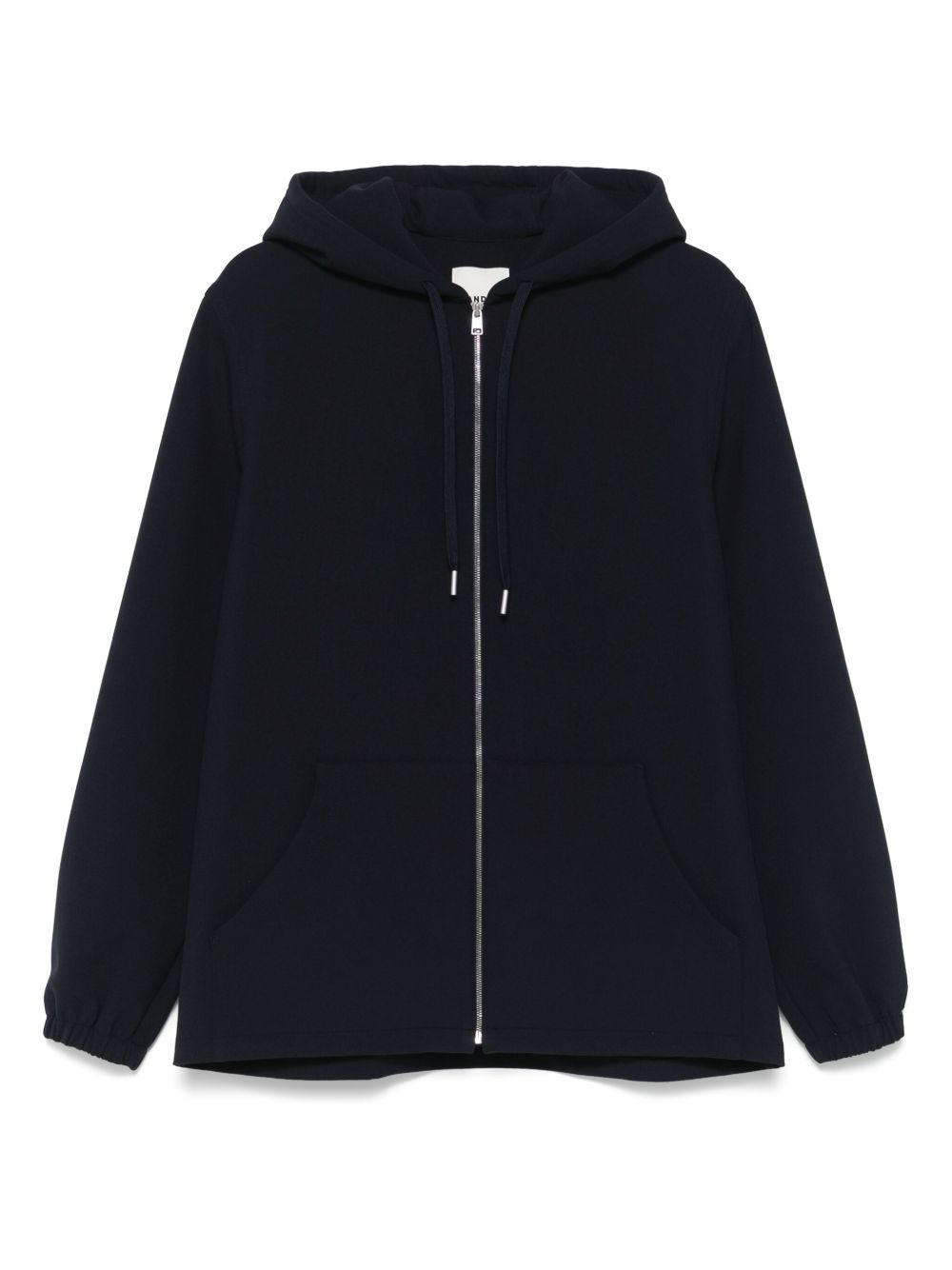 zip-up hoodie Highlights - Navy blue - Drawstring hood - Front zip fastening - Long sleeves - Slip pockets to the sides Imported Composition Recycled Polyester 44%, Polyester 44%, Viscose 28%, Elastane 4% SIZE & FIT Model measurements Height 6 ft 2 in(1.88 m) Bust/Chest 36.61 in(93 cm) Hips 35.82 in(91 cm) Waist 27.95 in(71 cm) FittingInformation Designed for a relaxed fit, this piece allows for comfort and movement when worn The ribbed hem offers a close, comfortable fit Made from a midweight non-stretch fabric, this piece offers minimal elasticity when worn Washing instructions Dry Clean Only