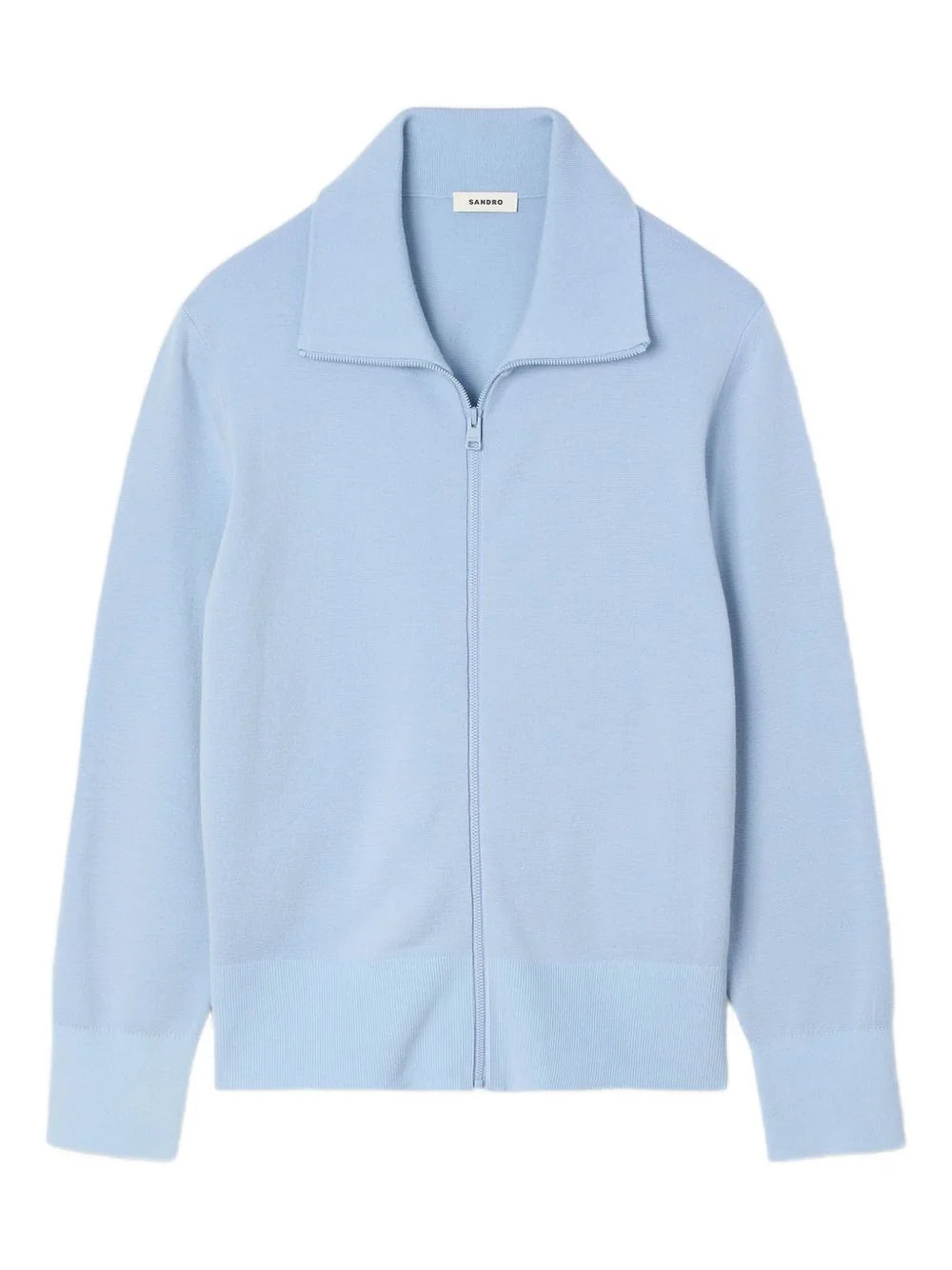 zipped cardigan Highlights - Sky blue - Zip fastening - High neck - Long sleeves - Ribbed cuffs Imported Composition Lyocell 67%, Viscose 33% Washing instructions Read Manufacturer Guidelines