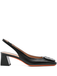 55mm leather pumps Highlights - Black - Elasticated slingback strap - Square toe - Branded leather insole - Low block heel Made in Italy Composition Sole: Calf Leather 100%, Rubber 100% Lining: Calf Leather 100% Outer: Calf Leather 100% SIZE & FIT Measurement HEEL 2.16 in(5.5 cm)