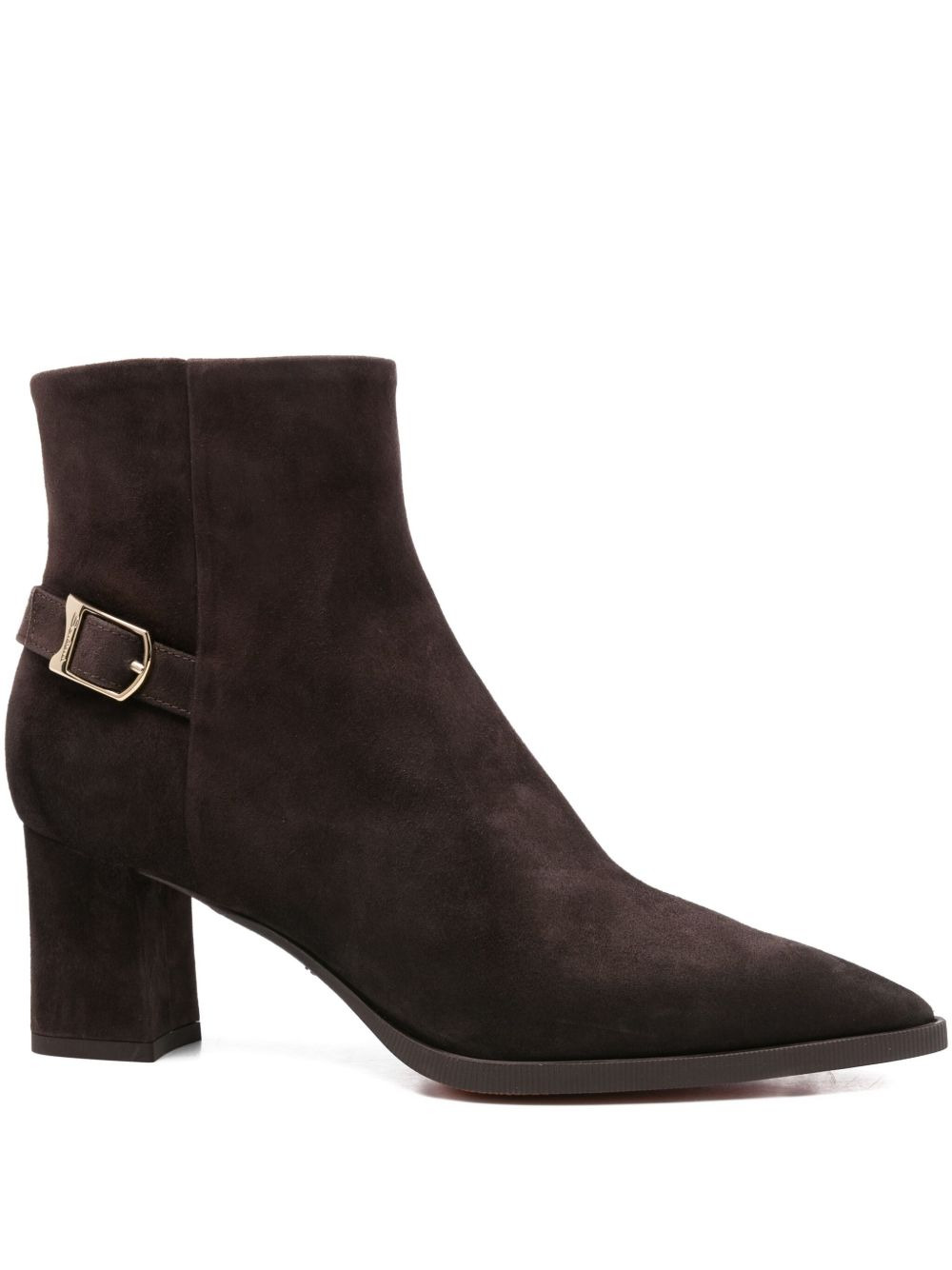 60mm pointed-toe buckle-detail ankle boots Highlights - Dark brown - Calf suede - Block heel - Pointed toe - Ankle height - Buckled strap Made in Italy Composition Outer: Calf Suede 100% Lining: Calf Leather 100% Sole: Rubber 100% SIZE & FIT Measurement HEEL 2.36 in(6 cm)