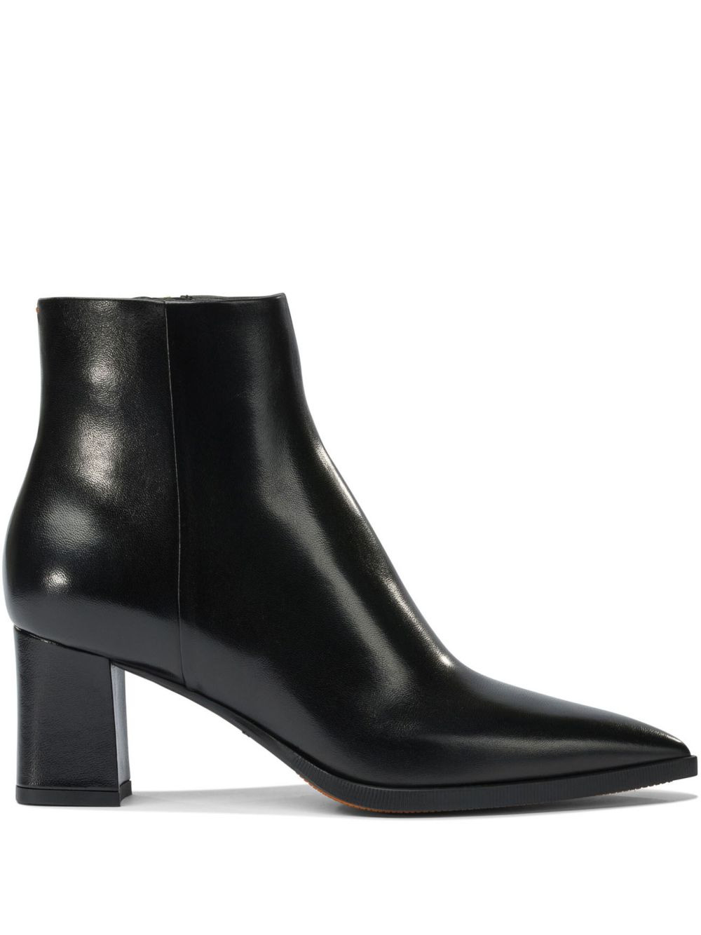 65mm leather ankle boots Highlights - Black - Calf leather - Pointed toe - Block heel - Side zip fastening - Ankle-length Made in Italy Composition Outer: Calf Leather 100% Lining: Calf Leather 100% Sole: Rubber 100% SIZE & FIT Measurement HEEL 2.55 in(6.5 cm)