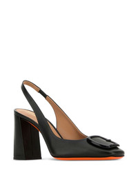 85mm block-heel slingback pumps Highlights - Black - Slingback design - Rounded toe - Oversized buckle detail - Chunky block heel - Contrasting orange outsole Made in Italy Composition Outer: Nappa Leather 100% Lining: Leather 100% Sole: Leather 100% SIZE & FIT Measurement HEEL 3.34 in(8.5 cm)