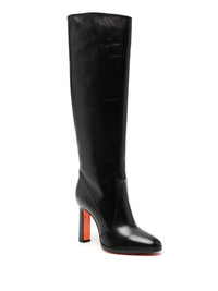 95mm leather boots Highlights - Black - Calf leather - Polished effect - Short side zip fastening - High block heel - Knee-length - Almond toe - Branded insole - Contrast lining - Leather sole Made in Italy Composition Outer: Calf Leather 100% Sole: Calf Leather 100%, Rubber 100% Lining: Calf Leather 100% SIZE & FIT Measurement CIRCUMFERENCE 13.38 in(34 cm) HEEL 3.74 in(9.5 cm) HEIGHT 19.68 in(50 cm) Sole height 0.39 in(1 cm)