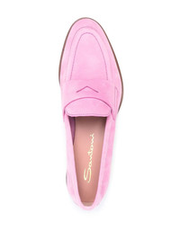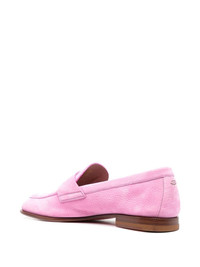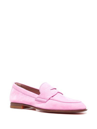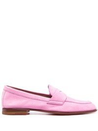 almond-toe 15mm penny loafers light pink calf suede penny slot slip-on style almond toe branded leather insole low block heel rubber outsole Made in Italy Composition Suede 100%