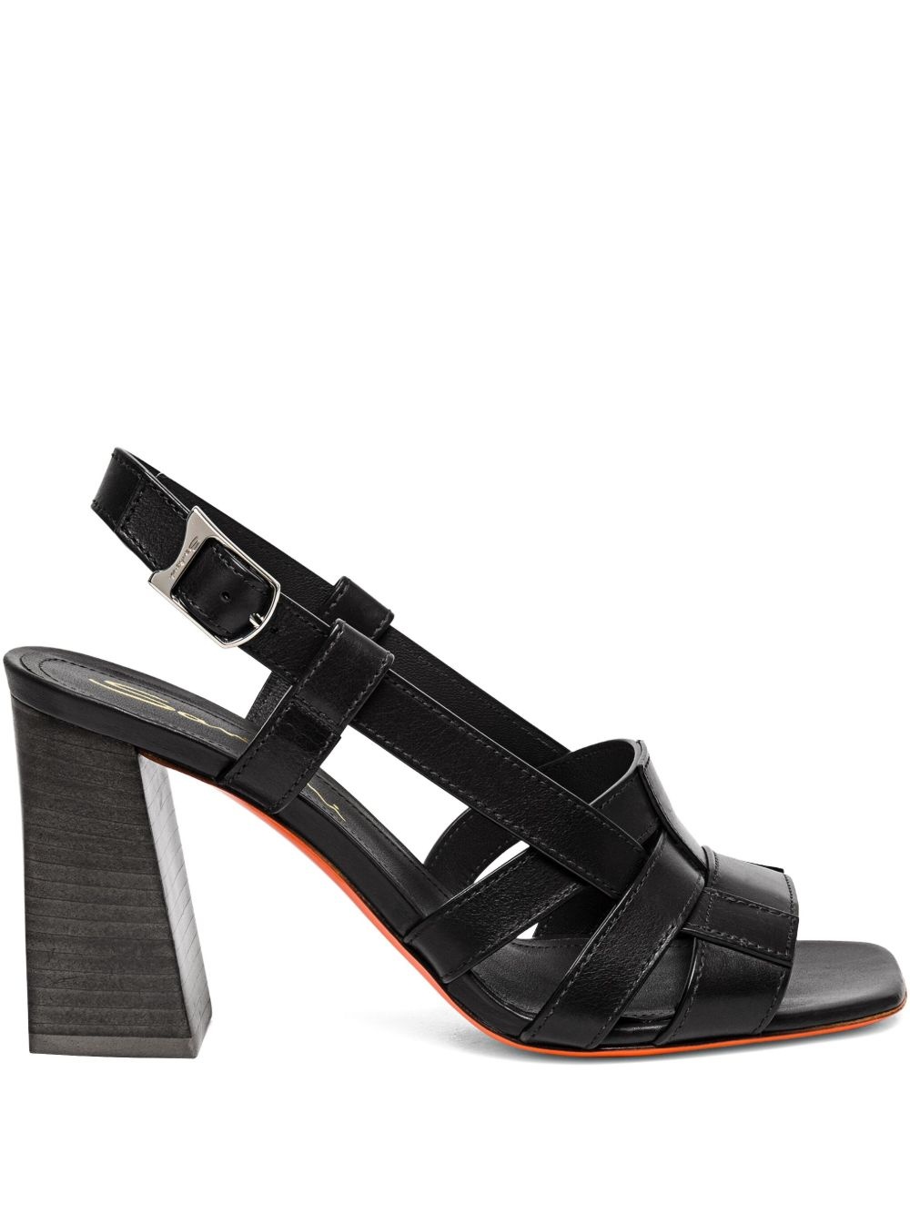 Beyond sandals Highlights - Black - Open square toe - Adjustable slingback strap - Geometric strap design - Block heel - Leather insole Made in Italy Composition Outer: Calf Leather 100% Lining: Goat Skin 100% Sole: Leather 100%