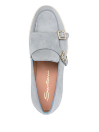 double-buckle suede loafers Highlights - Light blue - Suede upper - Double buckle fastening - Flat sole - Round toe - Leather insole Made in Italy Composition Sole: Rubber 100% Lining: Calf Leather 100% Outer: Calf Suede 100%
