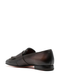 fringe double-buckle monk shoes dark brown calf leather gradient effect almond toe perforated toebox fringe detail at the toe double tongue-buckle fastening branded leather insole leather and rubber sole Made in Italy Composition Outer: Calf Leather 100% Lining: Calf Leather 100% Sole: Calf Leather 100% SIZE & FIT Measurement HEEL 0.59 in(1.5 cm)