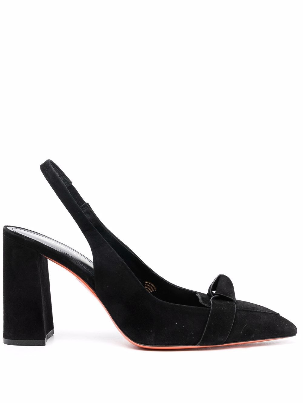 knot-embellished 95mm slingback pumps black leather knot detailing pointed toe elasticated slingback strap branded insole high block heel Made in Italy Composition Outer: Calf Leather 100% Lining: Leather 100% Sole: Leather 100% SIZE & FIT Measurement HEEL 3.74 in(9.5 cm)