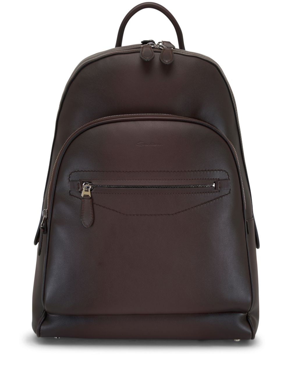 leather backpack Highlights - Chestnut brown - Two-way zip fastening - Front zip-fastening pocket - Two padded adjustable shoulder straps - Single rolled top handle Made in Italy Composition Outer: Leather 100% SIZE & FIT Measurement DEPTH 6 in(15.2 cm) HEIGHT 16 in(40.6 cm) WIDTH 11 in(27.9 cm)